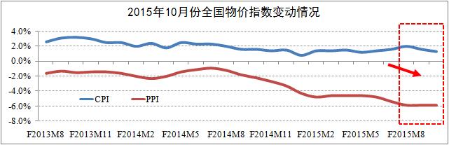 通貨緊縮壓力繼續增強。綜合分析物價(jià)指數,10月消費者價(jià)格指數(CPI)同比增長(cháng)1.3%,環(huán)比下降了0.3個(gè)百分點(diǎn);生產(chǎn)者價(jià)格指數(PPI)同比下降了5.9%,降幅較上月基本持平。與此同時(shí),在全國流通領(lǐng)域50種重要生產(chǎn)資料中,11月上旬價(jià)格下跌的共31種,且集中在金屬及化工領(lǐng)域。以CPI和PPI為主的物價(jià)指數持續下行折射出我國面臨通貨緊縮的壓力持續增強。