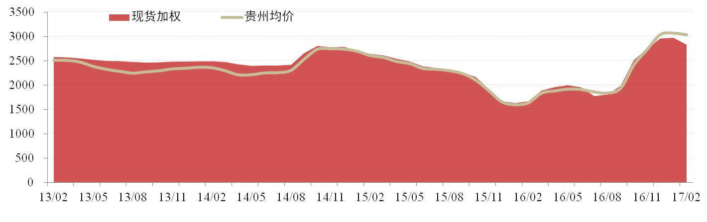 全國現貨價(jià)格方面,2月份成為氧化鋁價(jià)格走勢的分水嶺,氧化鋁市場(chǎng)價(jià)格出現小幅下降但主要氧化鋁企業(yè)控制力仍在,價(jià)格相對可控。全國氧化鋁現貨加權價(jià)為2,928元/噸,環(huán)比下降1.38%。貴州氧化鋁現貨加權價(jià)為3,030元/噸,環(huán)比下降1.17%。貴州地區現貨加權價(jià)格相對高于全國其他地區。