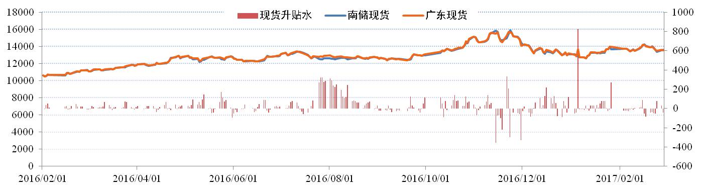 現貨價(jià)格方面:2月份,國內鋁價(jià)波動(dòng)區間加寬,基本面與政策面的博弈十分激烈,因此價(jià)格呈現大幅波動(dòng)局面。截止到3月10日,長(cháng)江現貨市場(chǎng)價(jià)報收于13,520元/噸,環(huán)比上漲0.22%;華南現貨市場(chǎng)價(jià)報收于13,550元,環(huán)比上漲0.37%。國內鋁錠現貨社會(huì )總庫存為126.66萬(wàn)噸,環(huán)比增加19%;廣東地區社會(huì )庫存34.9萬(wàn)噸,環(huán)比增加112%;近兩月廣東地區庫存增加明顯。