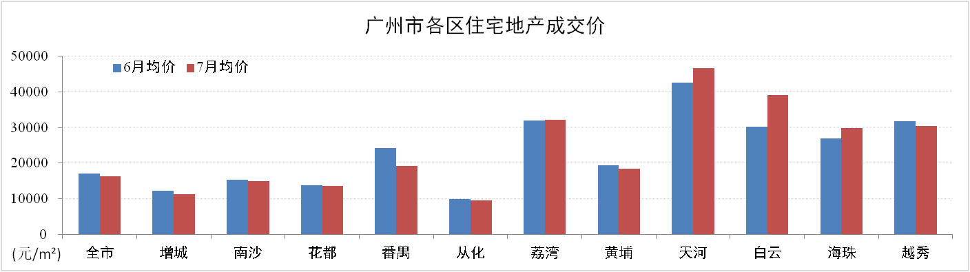 分析認為:7月全市成交價(jià)格略低于6月平均價(jià)格,部分區域出現價(jià)格波動(dòng),淡季影響價(jià)格下跌。預計在未來(lái)一段時(shí)間內,加上指導價(jià)政策的再次強調頒布,廣州市一手住宅成交均價(jià)將繼續呈現可控的回落態(tài)勢。