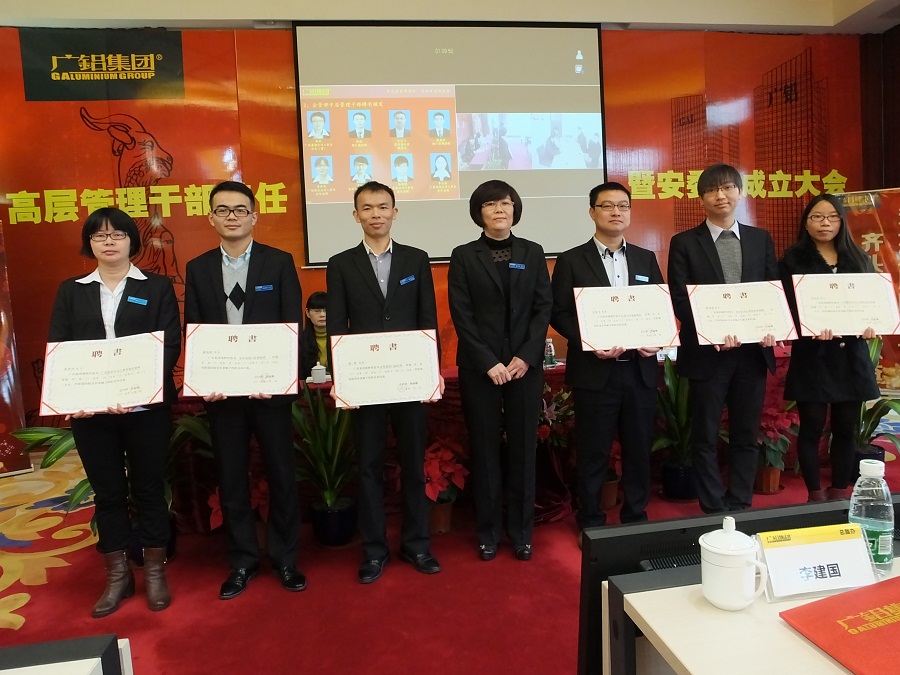 會(huì )議上,集團公司高層領(lǐng)導對集團本部15名中層管理干部及主持部門(mén)工作的助理級管理干部頒發(fā)了2015年度任職資格聘任證書(shū)。首先,由集團董事、常務(wù)副總裁黃丹華為總裁辦中層管理干部頒發(fā)了聘書(shū);隨后,結算部總經(jīng)理助理李漢香為結算部中層管理干部頒發(fā)了聘書(shū);最后,董事會(huì )秘書(shū)長(cháng)、副總裁兼企管部總經(jīng)理曾麗娜為企管部中層管理干部及主持部門(mén)工作的助理級管理干部頒發(fā)了聘書(shū)。貴州鋁業(yè)公司、貴州礦業(yè)公司董事長(cháng)葉永標代表為貴州鋁業(yè)公司財務(wù)處及人資處共2名管理干部頒發(fā)了聘書(shū)。