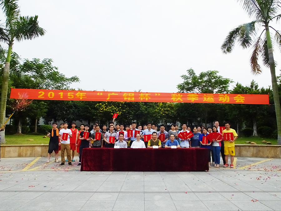 2015年11月19日,“廣鋁杯”秋季運動(dòng)會(huì )在廣鋁集團總部行政樓廣場(chǎng)正式落下帷幕。集團黨工團、廣鋁鋁業(yè)公司、廣鋁裝飾公司相關(guān)領(lǐng)導以及各單位運動(dòng)員代表出席了運動(dòng)會(huì )閉幕式。