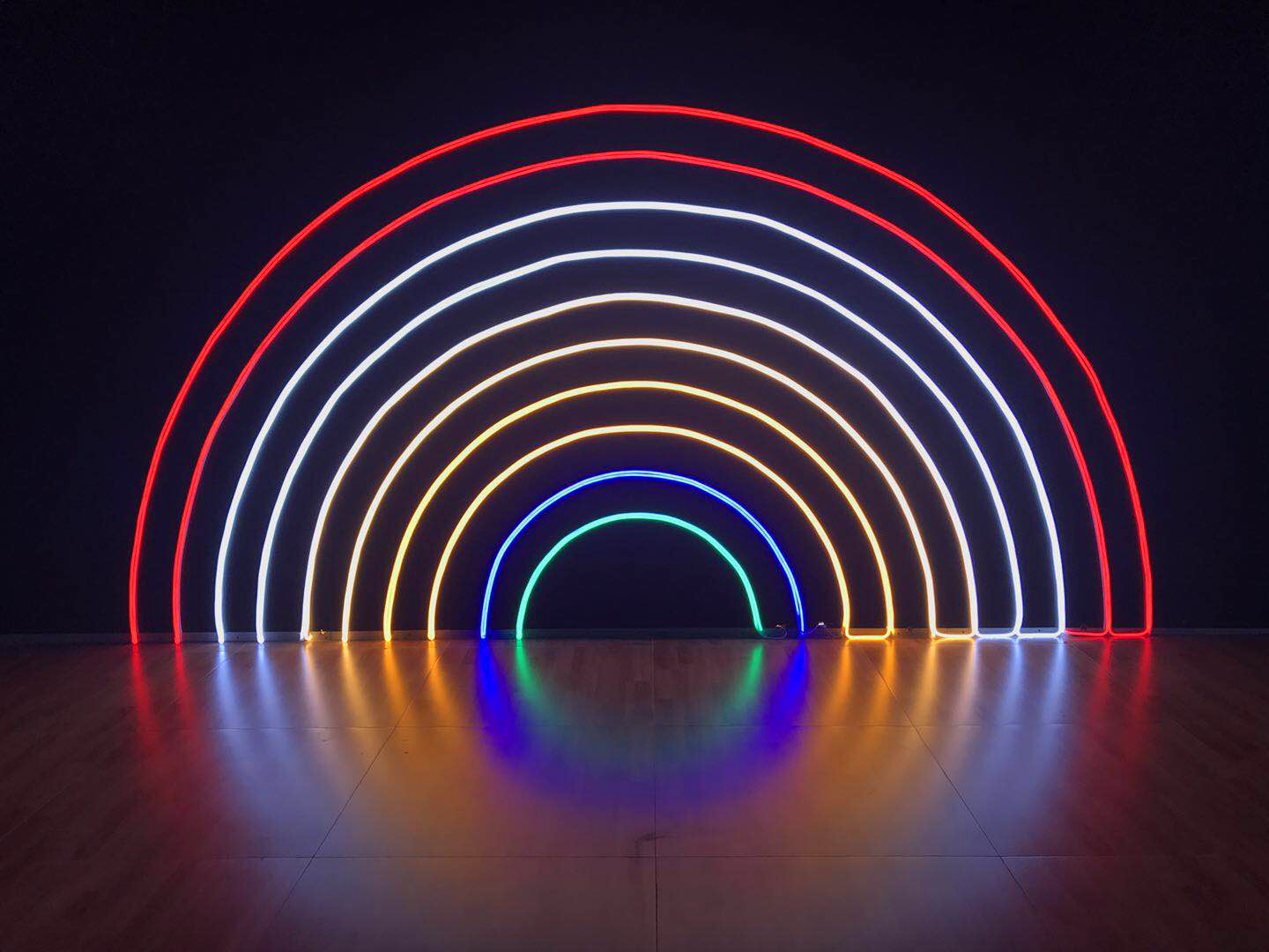 由光電組成的時(shí)光隧道,置身其中,仿佛穿梭于時(shí)空隧道,追溯過(guò)去探尋未來(lái)。